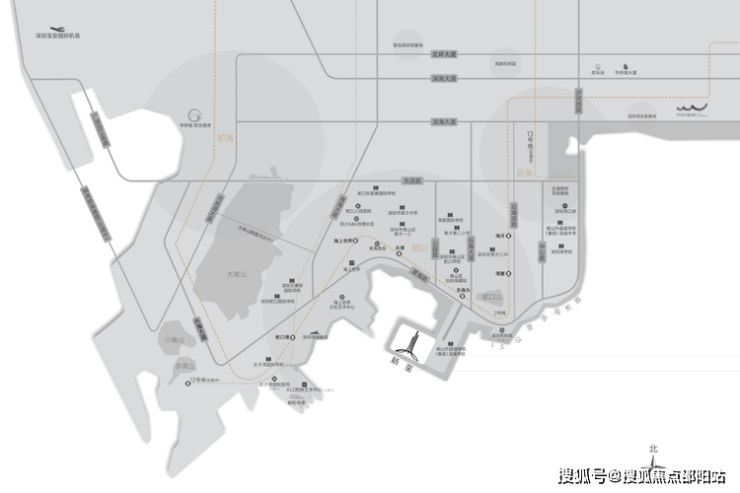 东侧为半岛城邦和南海玫瑰园三期,西侧与招商双玺隔海相望,北侧为深圳湾内湾海域,南侧为一线深圳湾永久无遮挡海景