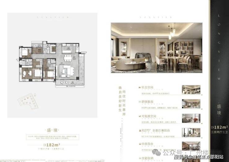 建面177-182㎡四房三卫,三开间朝南,开间达到6米,餐客厅面积达到50平,16米长的270度转角大阳台,大主卧带10米转角飘窗,总价920万起。