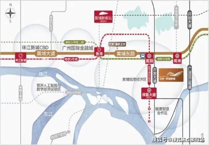 项目两条地铁线,地铁5号线保盈大道站(700米左右),以及13号线的南岗站(1500米),可以直达珠江新城、金融城、鱼珠CBD,小区内有公交车接驳到地铁口,开车约40分钟即可到达珠江新城