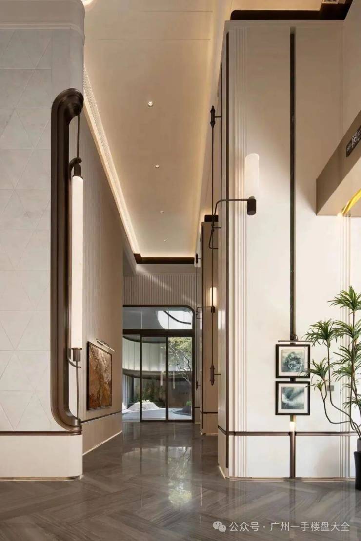 从小区大门进来是下沉的落客庭院,再进入都荟天珺的小区大堂,即可目睹约8米奢华挑空的落客大堂,其壮丽背景墙延绵40米,选用皇家白玉奢石,其色泽纯净透亮,营造出一种贵气逼人的氛围。此石材通常仅作为高端会所与豪宅的点睛之笔,而在这里,独具匠心地将其铺陈为整面墙体!身处其中,您定会被这宽敞明亮、奢华非凡且充满艺术魅力的大堂空间深深打动,感受到一种前所未有的震撼。