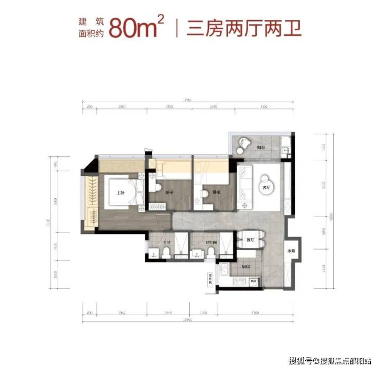 建筑面积约80㎡3房2卫